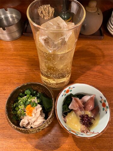 テレワークで朝からずっと家にいて、身体に悪い〜! そんなわけで明るいうちに仕事を切り上げ、お散歩へ。フラフラと出かけた近所で良い店を見つけた。 白子ポン酢とホタルイカ酢味噌あえ❤️ 大好きなものをちょっとずつ、の幸せ。 アンコウの天ぷらも2切れだ…