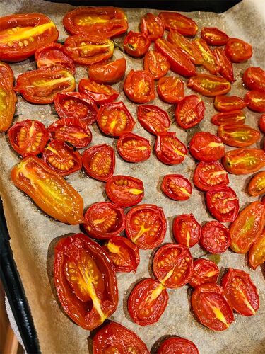 連休2日目の朝、起きたらキッチンがこんなことに… そうだ、夜中に半生ドライトマトつくったんだった!! 一口つまんでみたら、トマトの旨味がやばーい。 この日はピラティスが終わったら、これでパスタとピザを作って白ワインを飲むのだと、朝一で決断しまし…