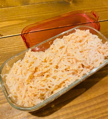 金曜日の夜、元気が出てきてからの作り置きタイム。 しらたきを明太子で。 楽しい癒しの時間❤️ 洗濯も済ませました〜🎶 いい週末になりそうだ